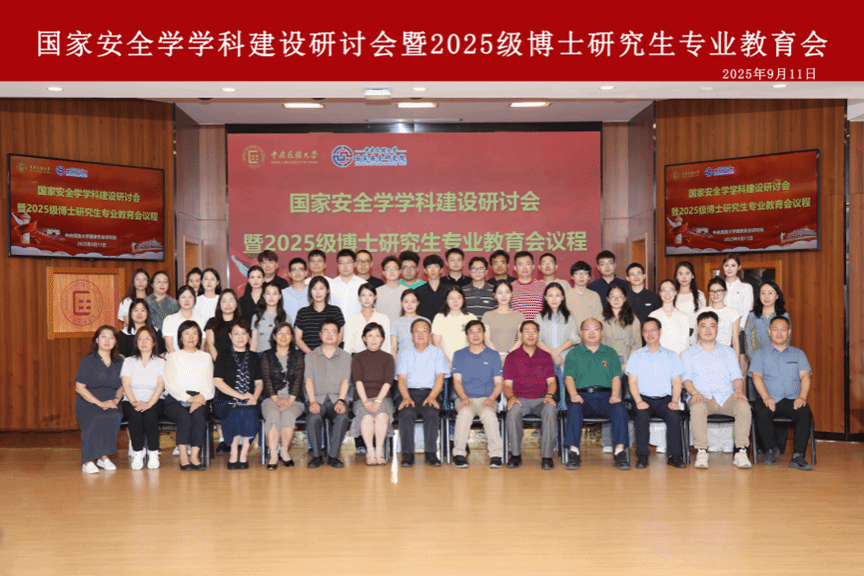副院长孙立慧,管理学院院长、国家安全学博士生导师黄锐教授,信息工程学院院长、国家安全学博士生导师翁彧教授,中国少数民族研究中心主任、国家安全学博士生导师祁进玉教授,哲学与宗教学学院院长、国家安全学博士生导师尹志华教授,期刊社社长、国家安全学博士生导师袁剑教授等教师代表及国家安全学2025级博士研究生共60多名师生参加此次会议。会议由国家安全学学科建设办公室主任吴雪老师主持。